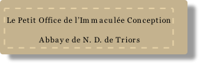 Le but final de la présente publication est d’en proposer une version chantée aux diverses communautés religieuses afin qu’elles puissent trouver dans cet acte de piété et de dévotion les ressources toujours renouvelées de grâces pour leur vie spirituelle et ainsi, féconder leurs différents apostolats à la première grâce de la création du monde nouveau que Dieu veut créer dans l’humanité : – Ecce nova fácio ómnia – accordée à la Vierge de Nazareth par le privilège de sa Conception Immaculée.